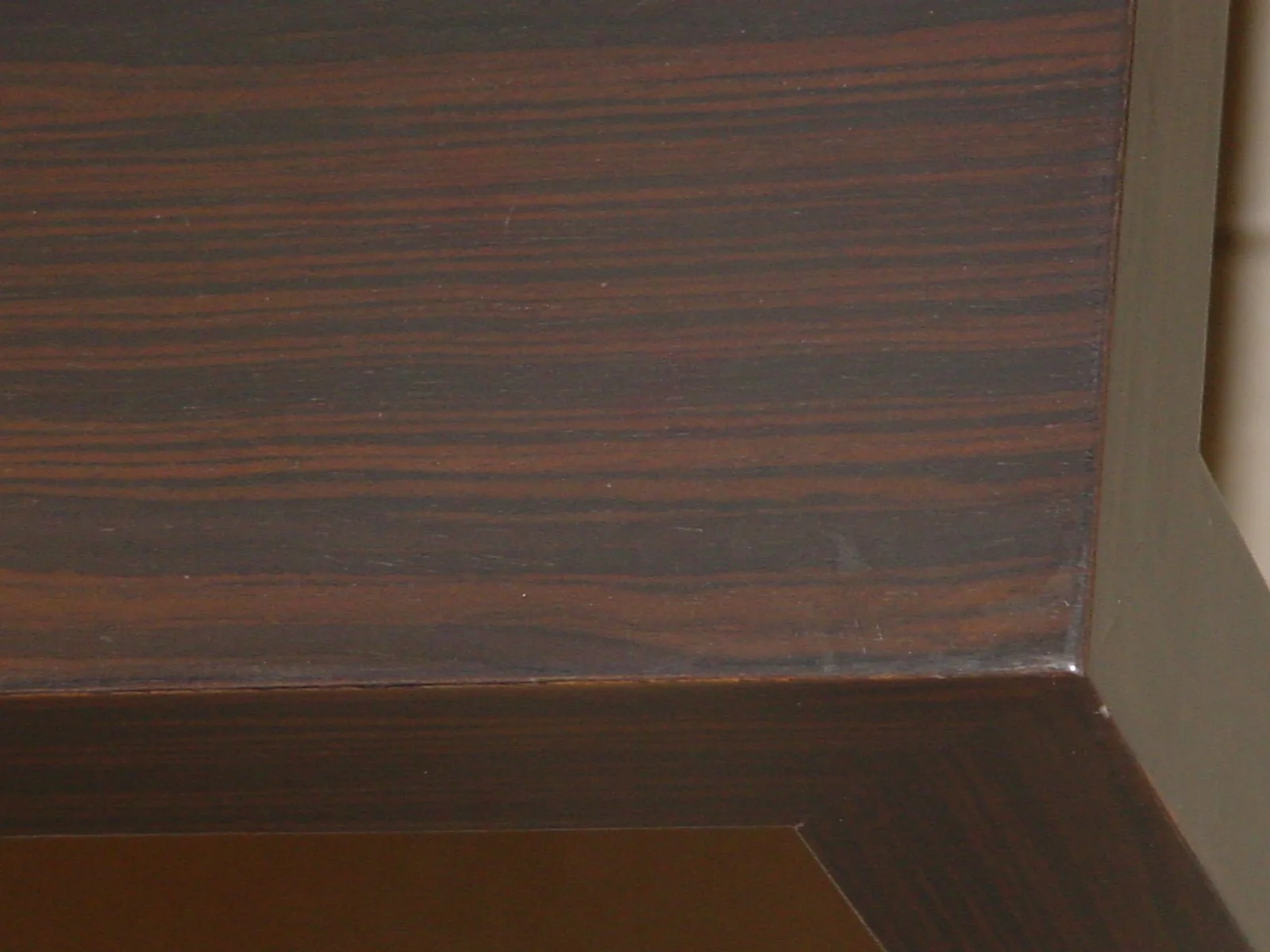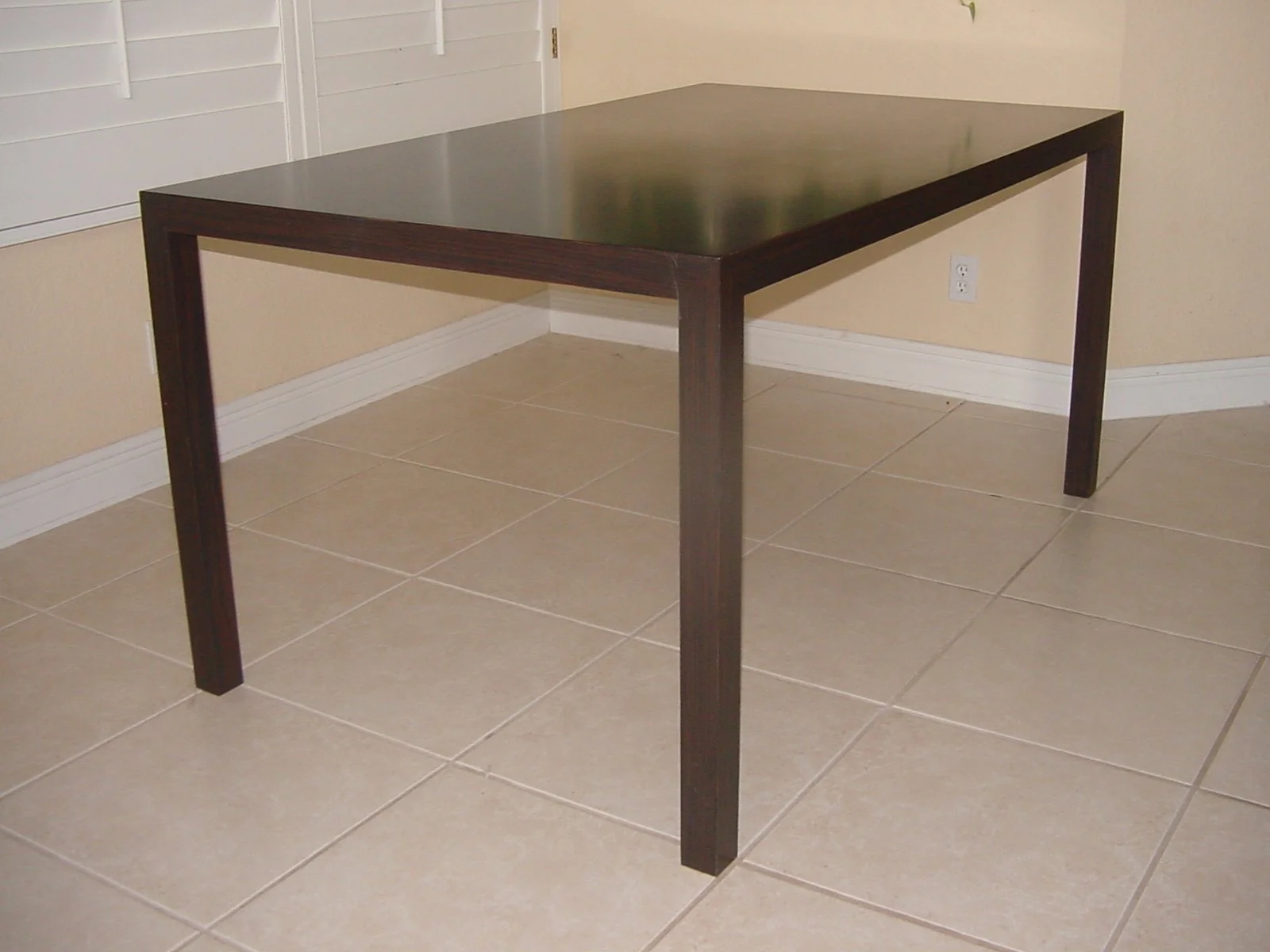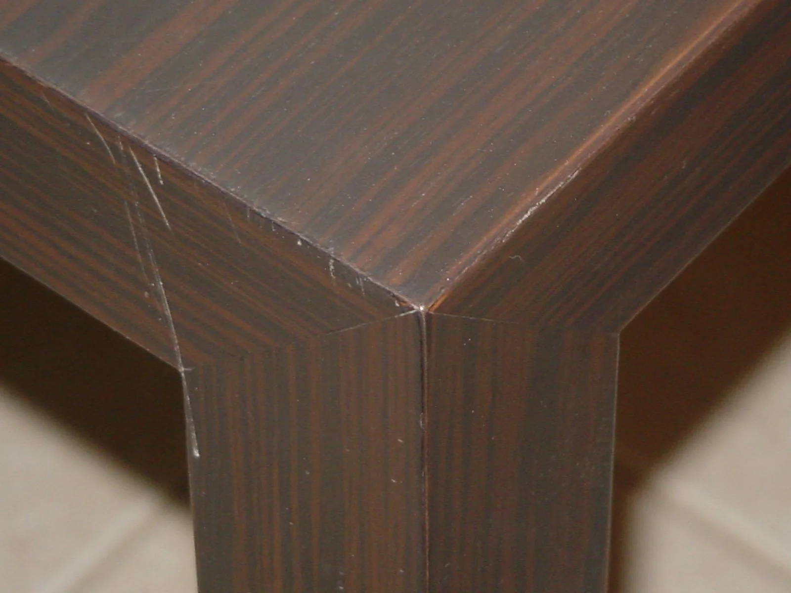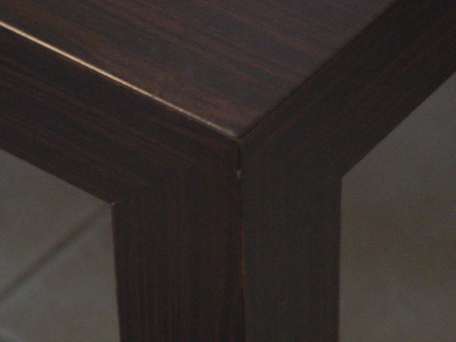 An elegant and delicate table. Book matched sequenced Macassar Ebony veneer with mitered corners. Slender legs and sides create a beautiful piece. This piece is usually placed as a set of two or three.