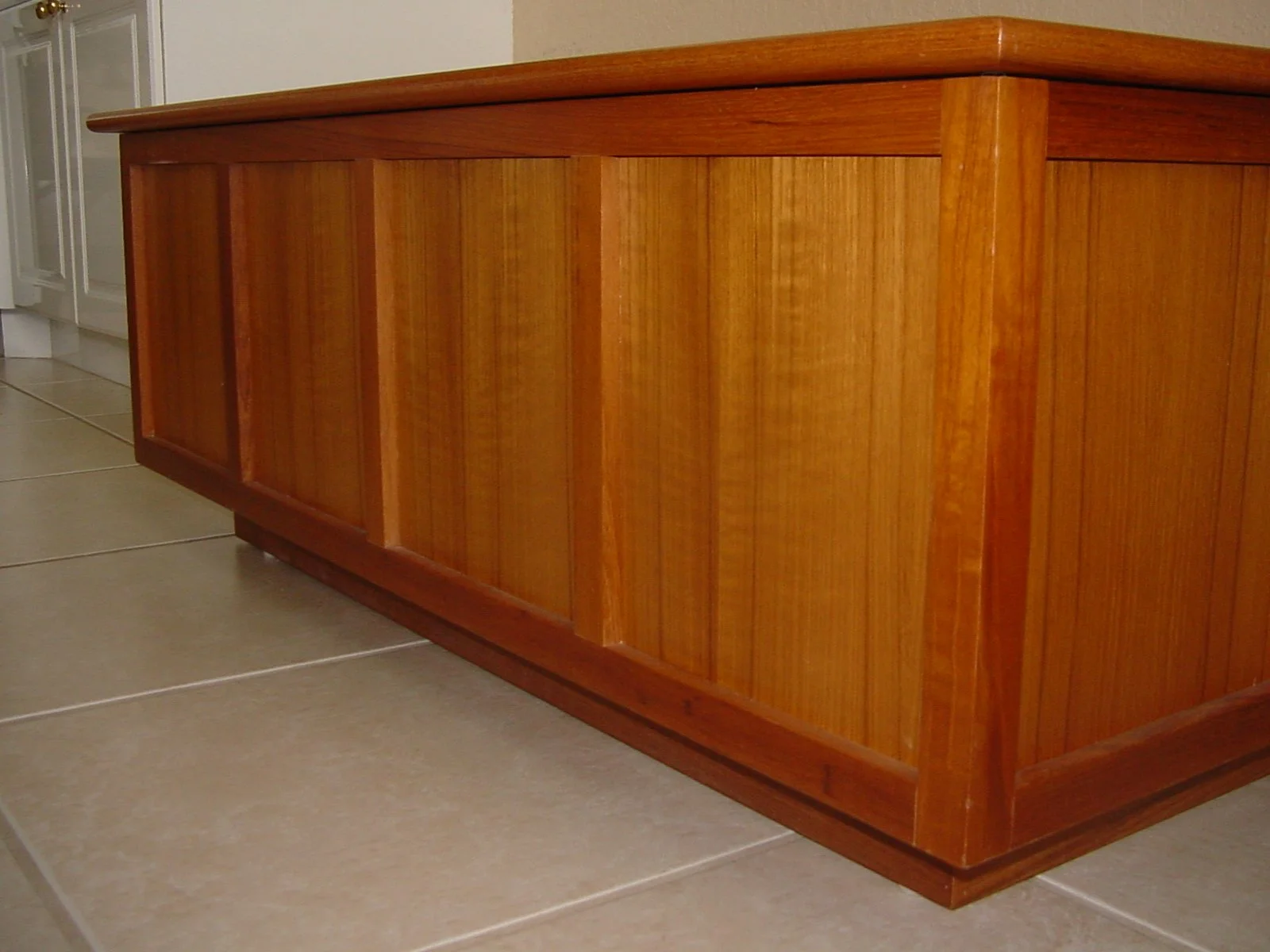 Custom teak table. Materials chosen of the highest quality, and hand assembled. Topped with a satin finish.
